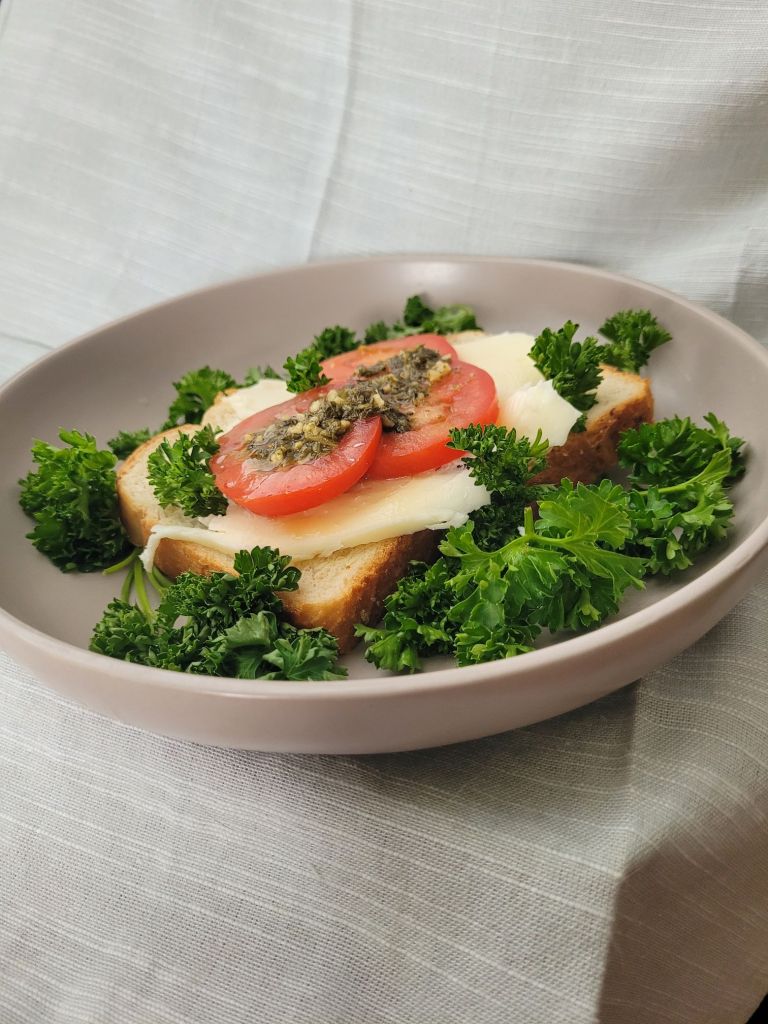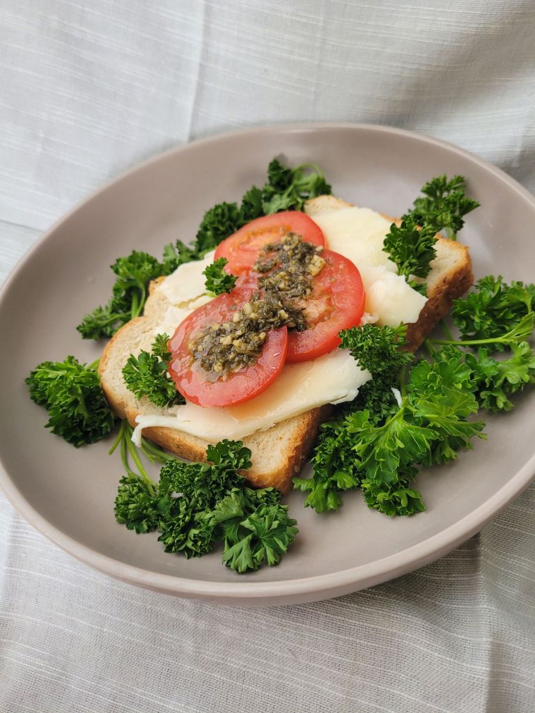 For lunch, just a simple piece of toast with a spread of pesto sauce, a nice thick slice of mozzarella cheese topped off with sliced tomatoes! It’s very delicious and filling despite it being pretty easy to make – something I like to make when I’m not starving for a huge meal but want to avoid scarfing down unhealthy junk food. What kind of quick meals do you like to make? I’ve been searching for quick but yummy foodstuffs to create as I’m trying to adopt healthier eating habits.