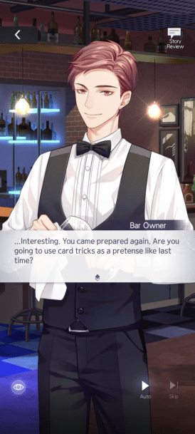 With that being said, there were other parts of the storyline that I fully enjoyed. Watching all of our main characters work together to not only solve the case but dedicate themselves to keeping each other safe, cementing this further when Vyn warns our MC to not arrive in the bar by herself because they’re surrounded by “murderers”. That quickly caught my attention and did well to transfer from a humorous, scooby-doo themed chase into something more serious.