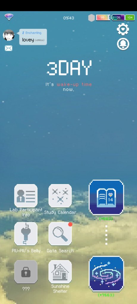 This is The Ssum’s main screen or as I call it, Teo’s page. This focuses primarily on your interactions with him and will also be the first screen you’ll see every morning. Off the bat, I’m pretty smitten by the gorgeous background images that shift around the time of day and how everything is fashioned like a real cellphone screen.